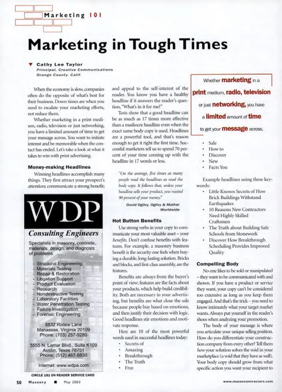 Use strong verbs in your copy to communicate your most valuable asset-your benefits. Don't confuse benefits with features. For example, a masonry business benefit is the security one feels when buying a durable, long-lasting solution. Bricks and blocks, and first-class assembly, are the features.