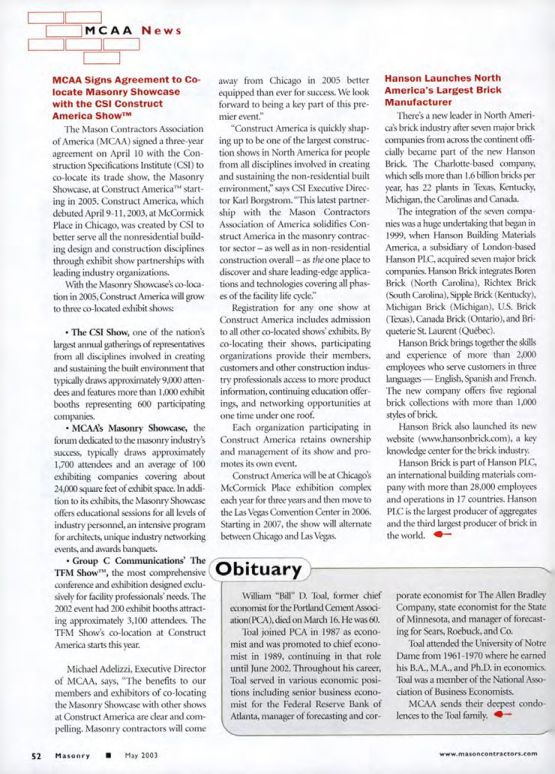 Masonry Magazine May 2003 Page. 54