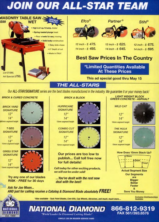 AND just for calling receive a Catalog & Diamond Blade absolutely FREE!