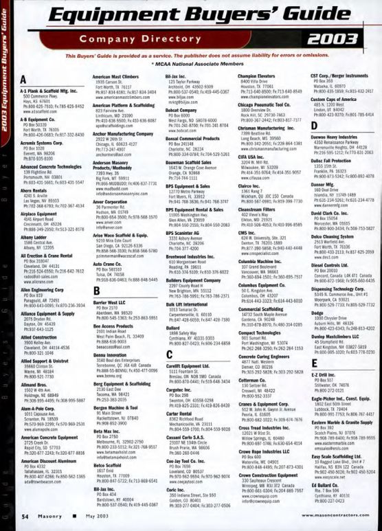This Buyers' Guide is provided as a service. The publisher does not assume liability for errors or omissions.