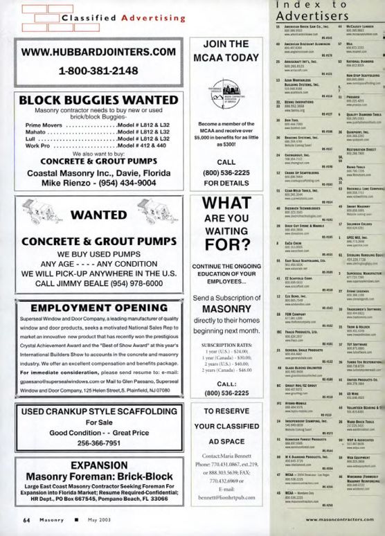 Large East Coast Masonry Contractor Seeking Foreman For Expansion into Florida Market; Resume Required-Confidential; HR Dept., PO Box 667545, Pompano Beach, FL 33066