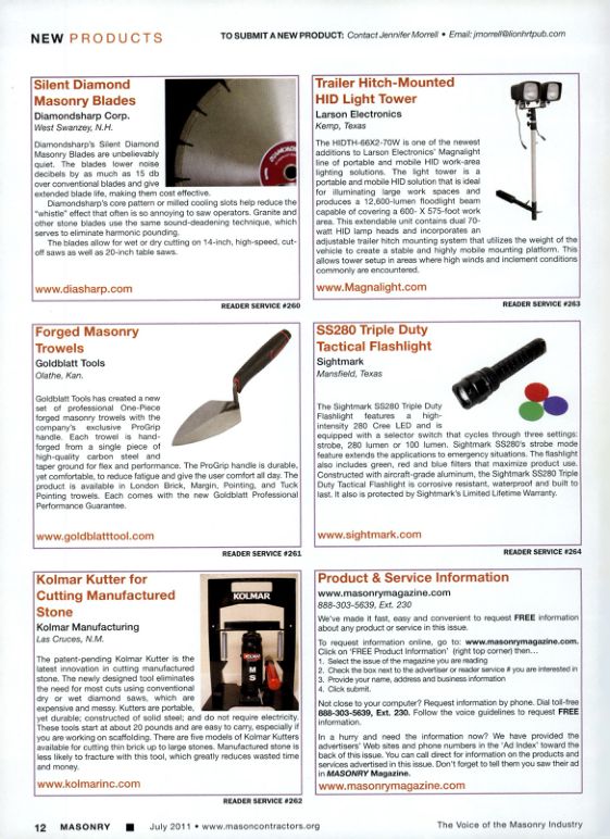 To request information online, go to: www.masonrymagazine.com. Click on 'FREE Product Information' (right top corner) then...