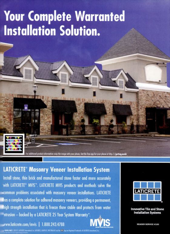 Install stone, thin brick, and manufactured stone faster and more accurately with LATICRETE® MVIS™. LATICRETE MVIS products and methods solve the common problems associated with masonry veneer installations. LATICRETE has a complete solution for adhered masonry veneers, providing a permanent, high strength installation that is freeze thaw stable and protects from water intrusion-backed by a LATICRETE 25 Year System Warranty*.