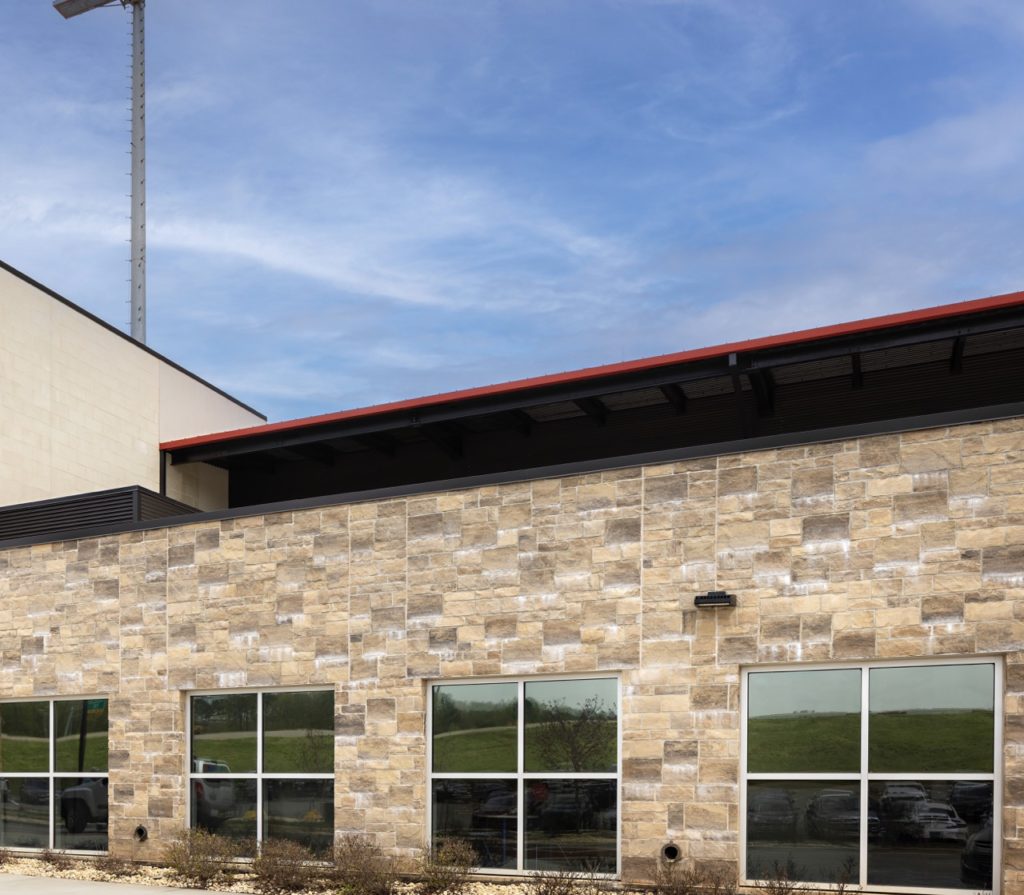 - Proper Design Techniques: Condition the space between floors to reduce pressure differentials that can wick moisture – especially in tall walls and multi-story structures. An effective air and weather barrier can help manage this as well. Design the wall with a cap, whether metal, masonry or other materials that extends beyond the face of the wall and has a drip edge to prevent water from running back to the wall. Design with other water shedding features in mind such as eaves, cornices, or other water shedding features.