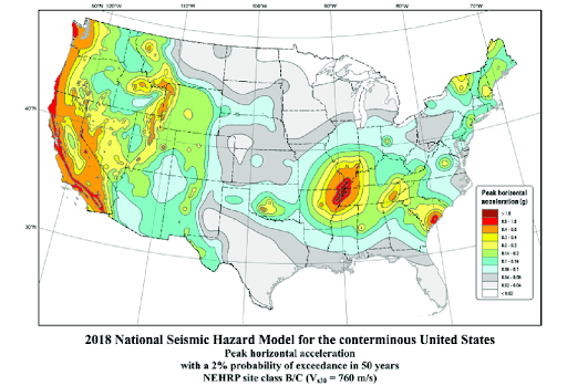 As one can see from this FEMA map, most areas of the conterminous US have seismicity, to some extent or another, with some specific areas having extreme seismicity. Designers must consider the extreme forces from seismic events when designing structural systems and selecting building materials.