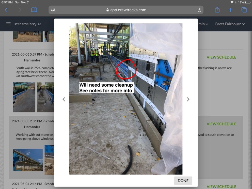- A scaffolding contractor requires his foremen to add at least 30 photos to CrewTracks per day. As a result, in his words, “We can really cut off some damage claims very quickly by saying, ‘What level? Oh, level three? Oh, here’s the pictures from level three. That dent was already there. We didn’t do that.”