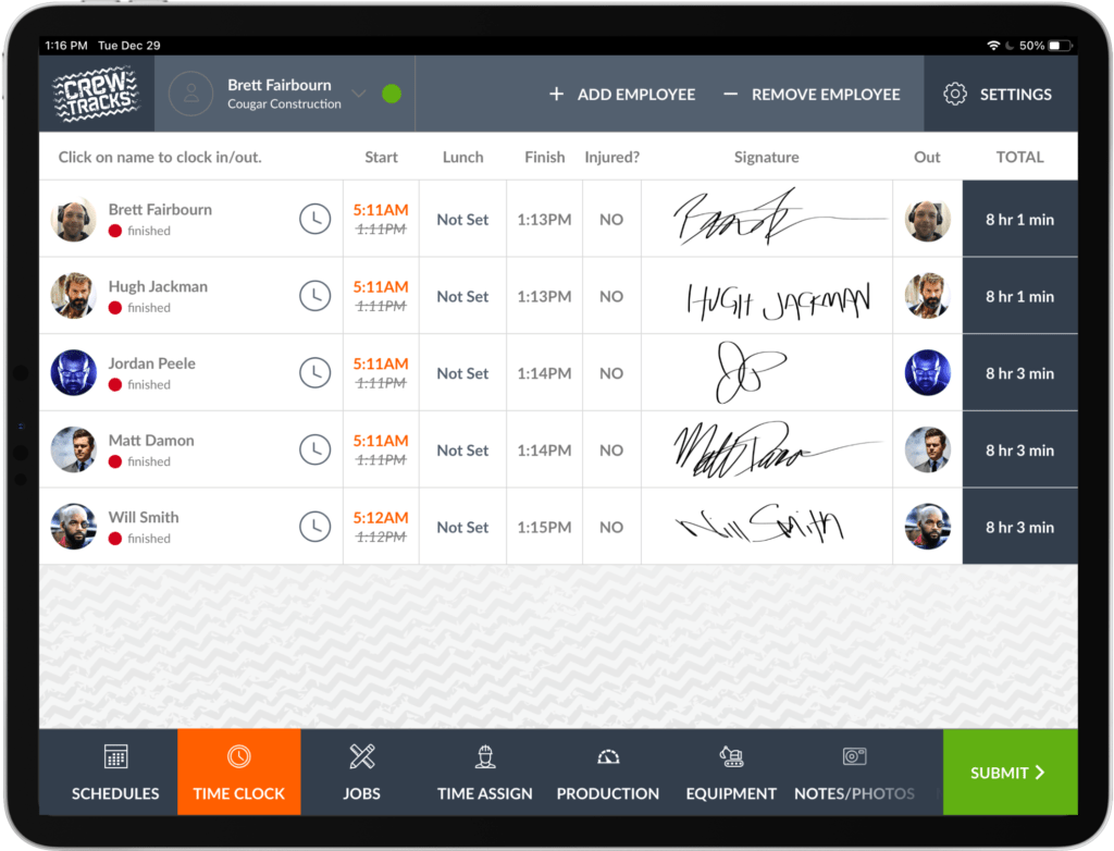 Going digital with documents: This is an often-overlooked benefit of CrewTracks. Some companies purchase CrewTracks only for the document features. If you’re currently filling out paper sheets for attendance, job costing, equipment inspections, production reporting, or anything else, you can take a giant leap forward simply by implementing CrewTracks’ document features. We will convert your existing documents into digital PDFs that can be completed in our app on a phone or a tablet. This represents almost zero change to your current operations. It’s probably the easiest way to dip your toe into the world of field management software.