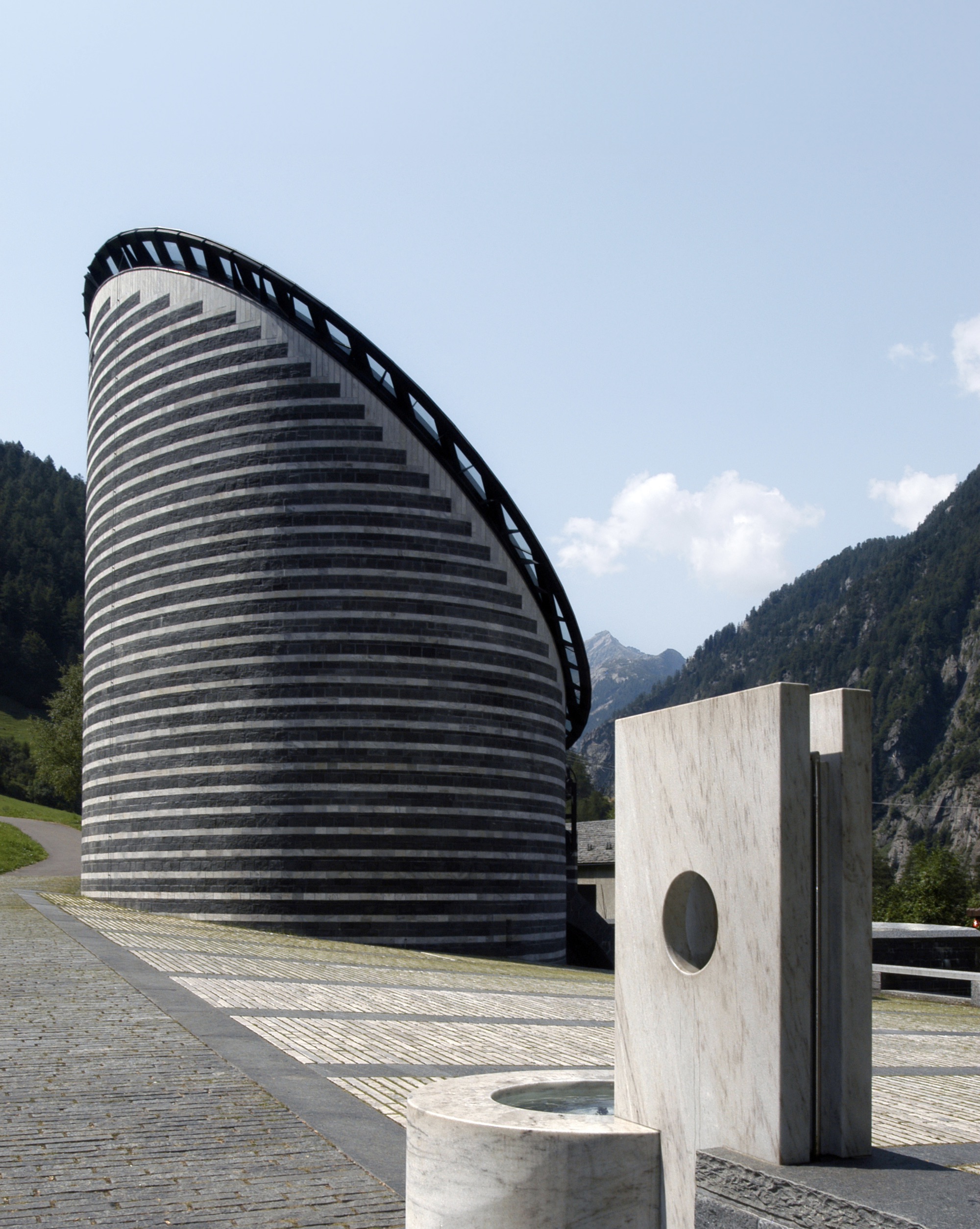 Ultimately, though, Botta wanted to pay homage to the old church through his modern design. In going through the wreckage of the old church, Botta salvaged the 18th-century church bells and incorporated them into the new design.