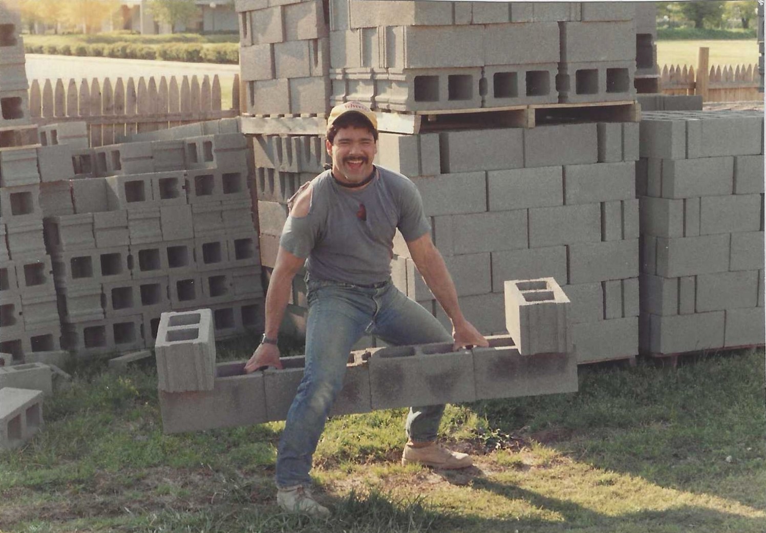 Anyway, John and Peach had a relative come and work with us for about a week. His name was Earl. What a piece of work he was, rough as a cob and just plain nasty. Well, one day it was break time and I did not have money for break, so he said, make you a bet. If you can pick up six blocks (Concrete Masonry Units), he would buy me a break. If not, I would lose break money from my check. Earl set up the block and picked them up, then I did the same thing. He bought me a break, but no longer needed me to work for them the rest of the summer. Turns out, nobody had ever picked up that block trick before.
