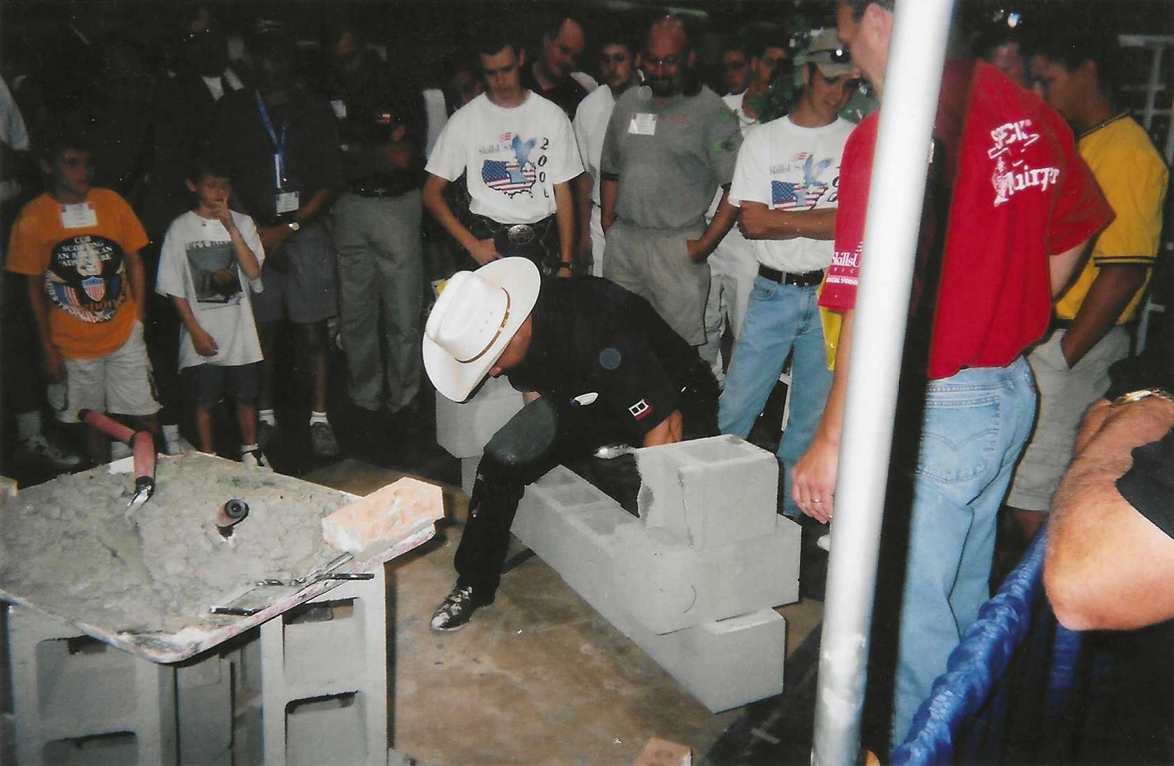 Years later, while working for Wasco, Inc. and Andy Sneed, I did a bunch of school, VICA, and MCAA promotions where I would set the block up in a configuration of six, pick them up, walk away, and let folks try it. Nobody to this day was as good as Dave Endres back in 1998 during the masonry convention. Dave not only picked them up, but he also dang near spun the six blocks on his pointer finger. We kept adding blocks till we could no longer pick them up—I think we quit at seven and both of us had chapped hands. If you ever have met Dave, well, you know you met a special person and you became better for meeting him. If you are yet to meet Dave, hurry up and meet him; he is the big guy with a smile on his face.