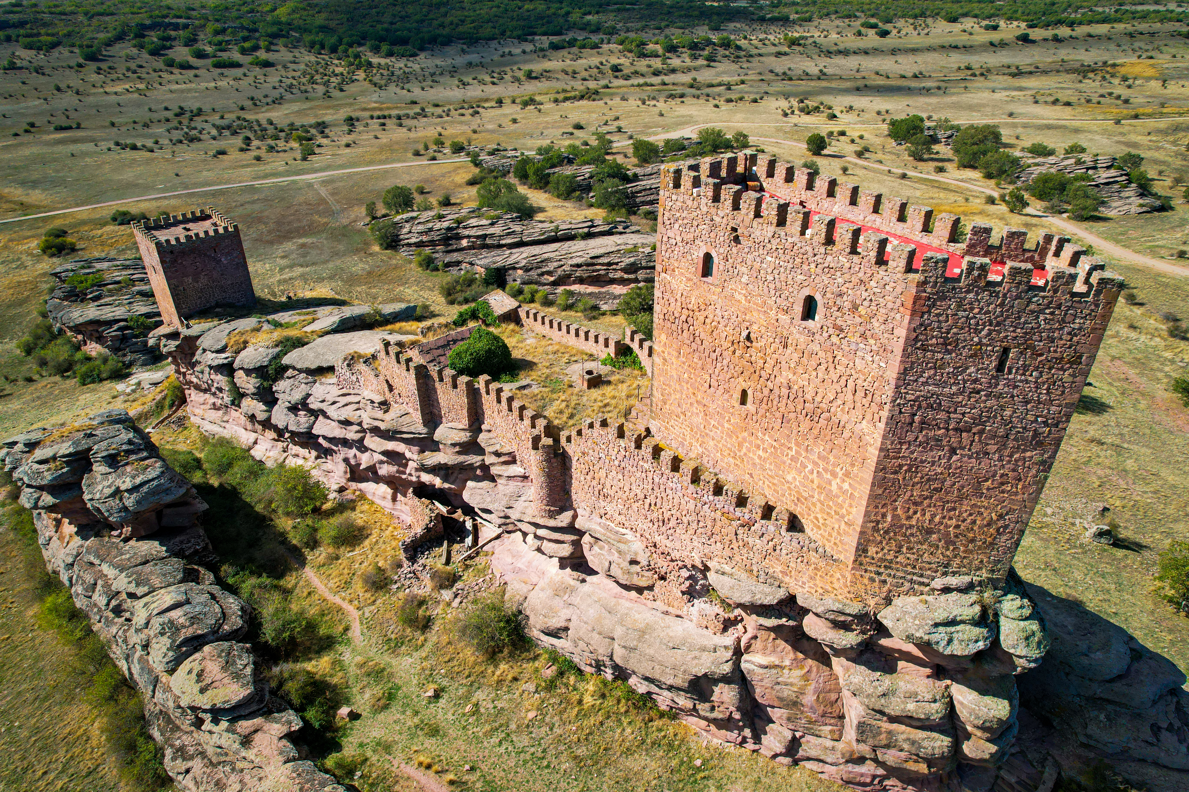 The Castillo de Zafra, a stunning medieval fortress in Spain’s Guadalajara province, was constructed in the late 12th and early 13th centuries. Built atop a rocky crag, its strategic location allowed for exceptional defensive strategies. The castle’s masonry blends Romanesque and Mudejar styles, with robust sandstone walls seamlessly integrated into the natural rock formations. Its rectangular keep and fortified towers exemplify military architecture of the Reconquista period. The craftsmanship demonstrates ingenuity in adapting the rugged terrain, creating an imposing structure that embodies strength and harmony with its surroundings.
