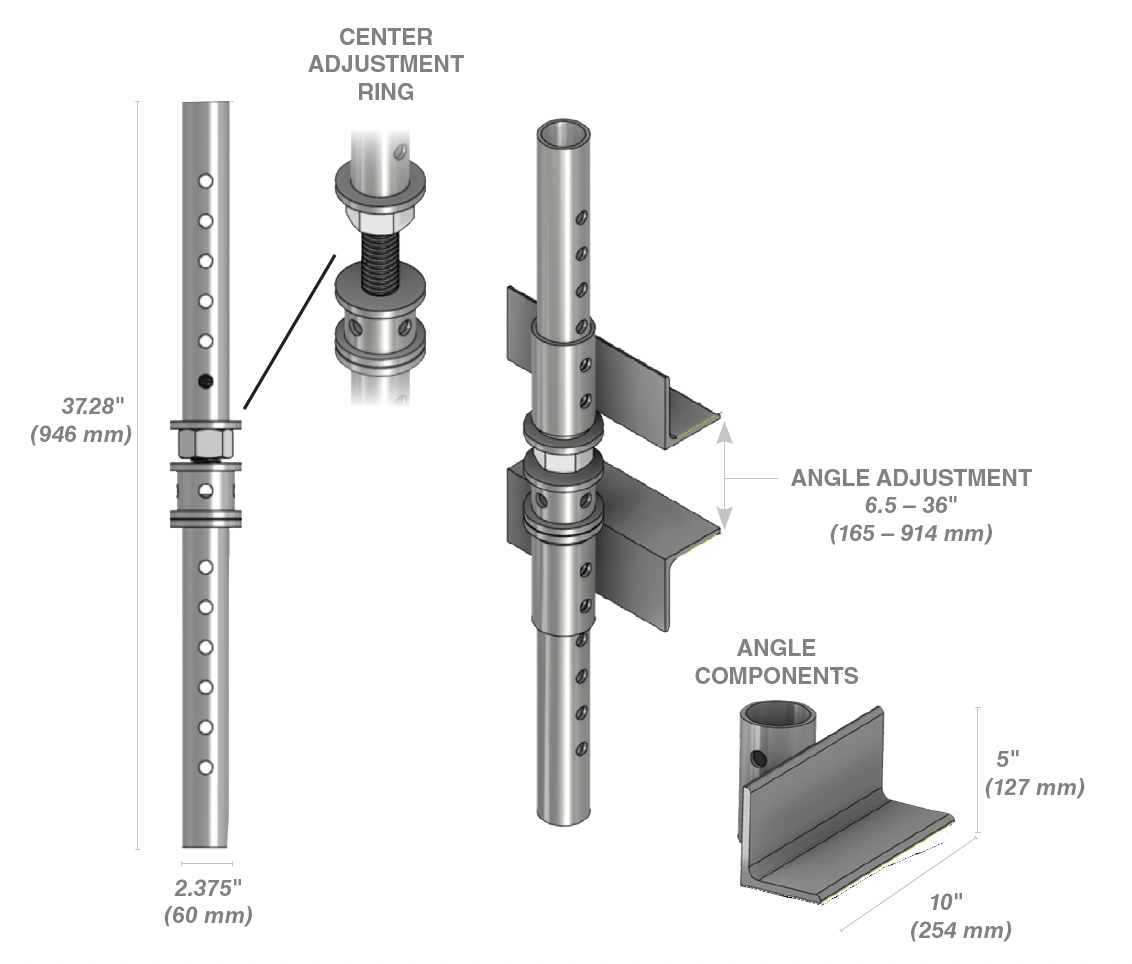 • Versatile and Adjustable Design: Includes three adjustable components—top angle, bottom angle, and center adjustment ring with locking pins. These allow a customizable span of up to 36 inches, accommodating various repair needs.