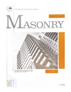 MASONRY was first published 60 years ago. Not too many publications, whatever their topic, can say that. Allow me to briefly take us down memory lane with some of the initial messages from Stephen D. Raimo, then-President of the MCAA. “Welcome, too, to MASONRY, the new official publication of the MCAA… a publication designed to add strength to the industry. It is devoted to your interests and welfare. MASONRY will implement the programs of various responsible segments of our industry and disseminate the latest advancements and developments for those in masonry and allied fields.” In that first issue, which I am looking at in a bound archive, there were comments from the leaders of several related groups, including:
