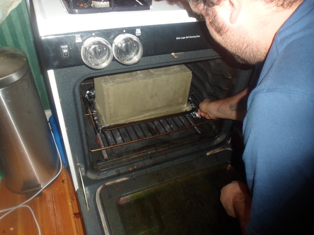 SolaBlock might not exist today except for a Thanksgiving 2012 meeting attended by both bricklayer Laverty and engineer Quinlan. During the meal, Quinlan explained his concept to Laverty and a business idea was born. The now co-founders drew up what would become the core SolaBlock concept after dinner. Originally, Quinland had sought to use conventional bricks as the target construction unit. About a year into the young project, Laverty, drawing on his experience as a professional R&D mason, advocated switching from bricks to an industry-standard construction block dimension. From there, research and development raced forward as the idea was polished – or, more literally, baked. With his wife’s assistance, Laverty started baking test blocks in his home oven.