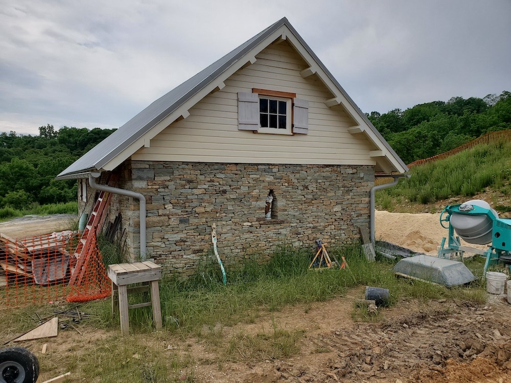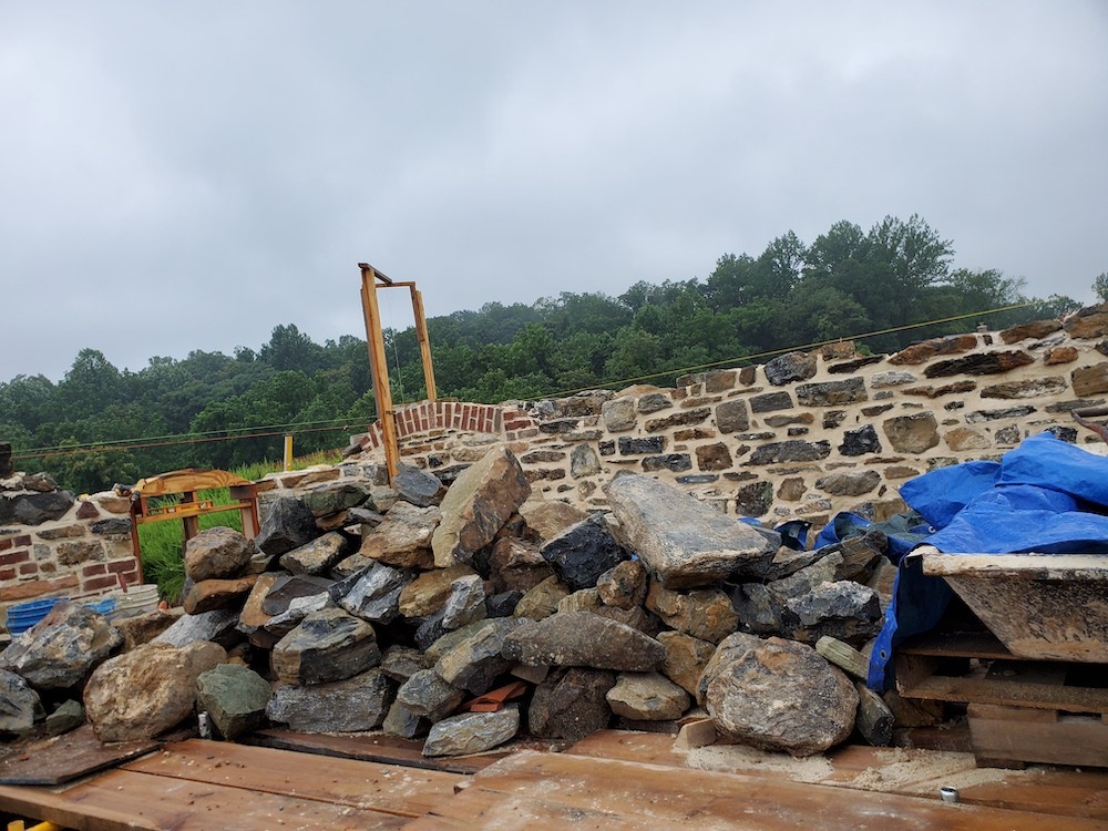 The project is New Construction using structural masonry. As per the nuns’ spiritual request, the only materials being used are stone, brick, and lime mortar. Joe continues to explain the masonry side of things: “The footers on all but two buildings are to be stone slabs. The two buildings that must have concrete footers are resting both on dirt and rock, therefore the engineer is requiring concrete to be used. The buildings that are either completely on rock or completely on dirt may have a footer made up of stone slabs 1’ thick and 4’ wide.”