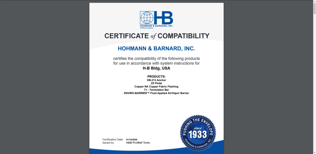 The Certificate of Compatibility guarantees that every H&B product selected will work in tandem as a system. This system-generated certificate saves hours of time researching compatibility.
