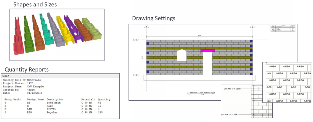Besides quickly building tools to create project specific masonry models, we focus a large effort on localization which specifies our product for the North American market. This will include block sizes (4”, 6”, 8”, 10”, 12”), block shapes (bullnose, open-ended, half, etc.), drawing settings, and reports ready to go out of the box or located on our Tekla Warehouse in the Cloud.