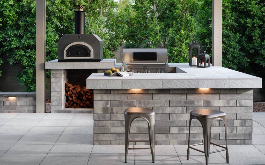 burners, a built-in bar ledge, or a wood-fired brick oven add to the usability of the space and make it feel like a separate wing of the home. A great material option when building out benches, barbecues, walkways, and other items, such
