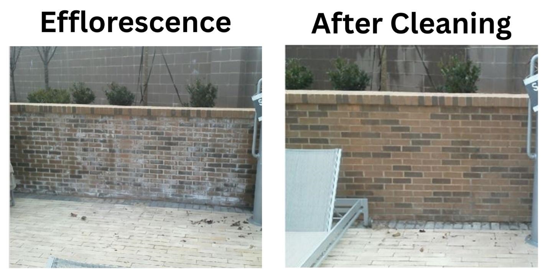Unnecessary moisture exposure that can contribute to staining concerns, such as the efflorescence shown here. This can be removed with proper post-construction cleaning techniques.