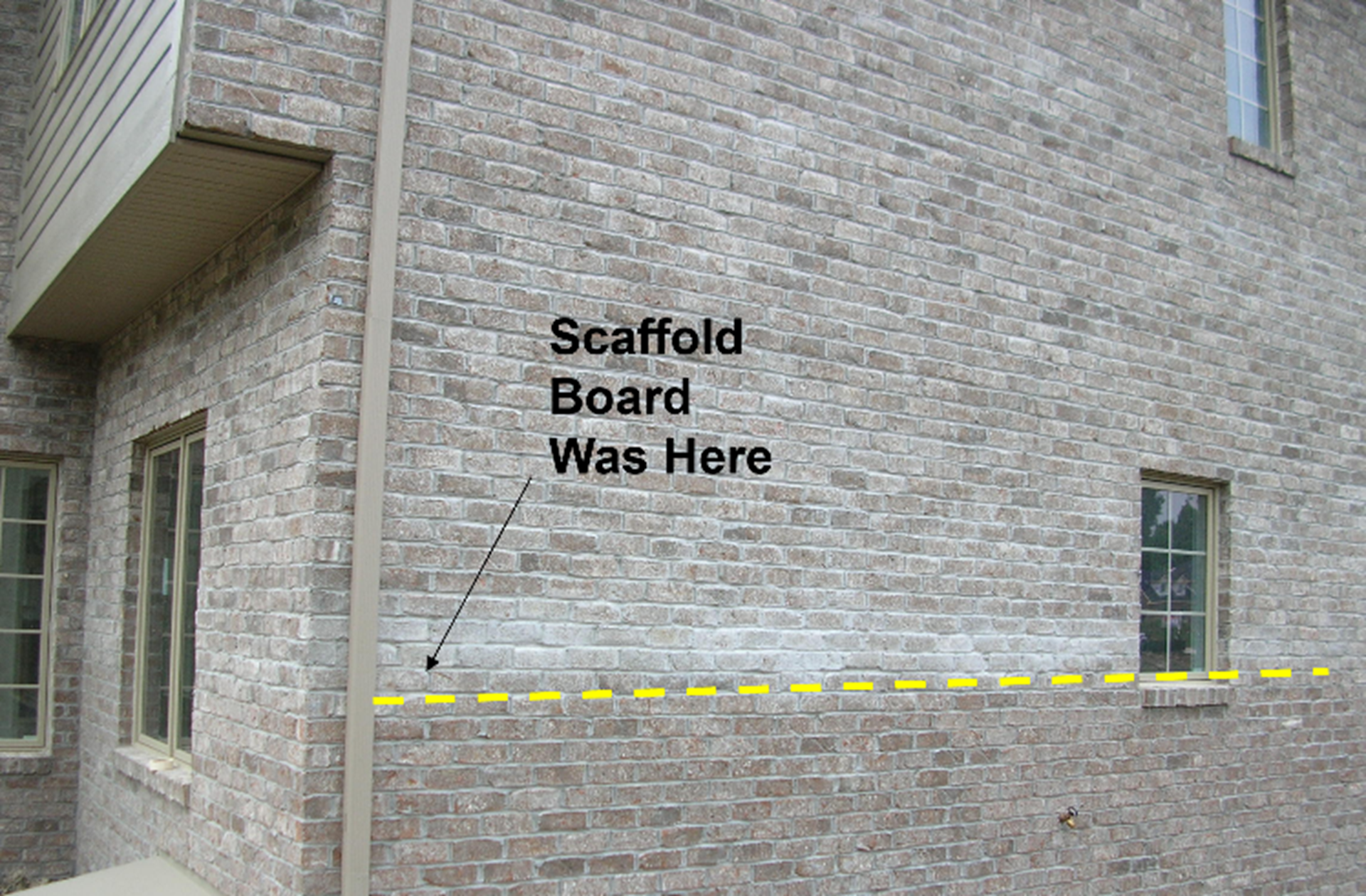 Scaffolding boards should always be tilted up at the end of the day to reduce discoloration or staining on the wall, as shown here.