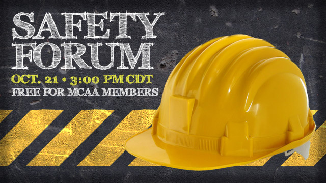 Words: Mason ContractorsThe Mason Contractors Association of America (MCAA) will host the next Safety Forum on Tuesday, October 21, 2014 at 3:00 PM CDT.