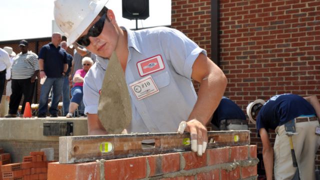 Words: Lynn NashLane Mullis is having a good run as a McGee Brothers Company apprentice. Mullis won the 2014 NC Department of Commerce State Fair Masonry Contest in October, placed third in the Mason Contractors Association of America (MCAA) International Skills Competition at the World of Masonry in February, and now has won the David R. Sigmon Memorial Award for top score at the Annual NCMCA Masonry Apprentice Skills Contest.