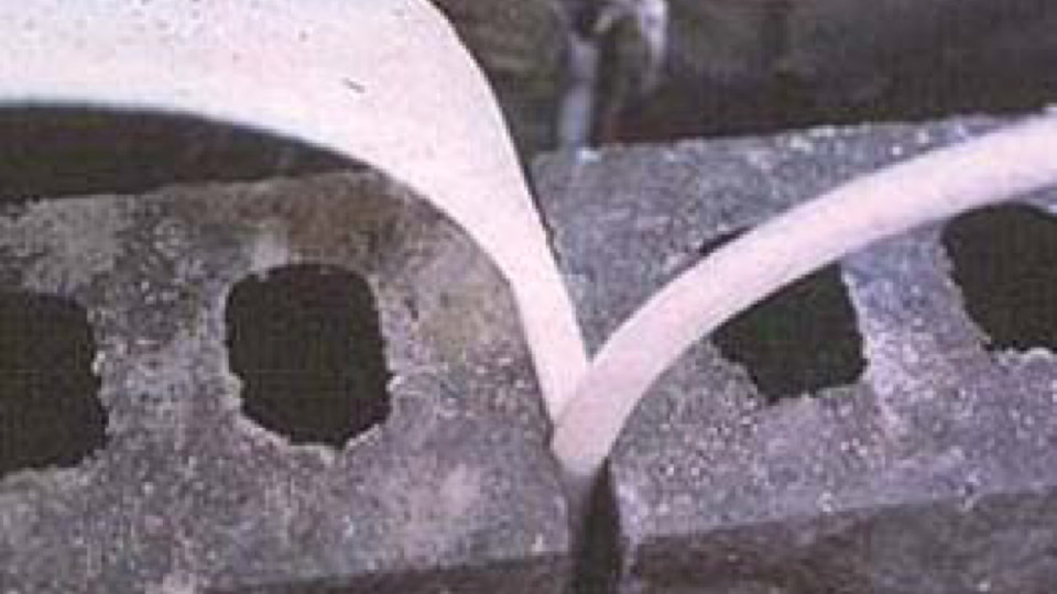 Because expansion joints are intended to accommodate expansion, their most important attribute is compressibility. If an expansion joint cannot be squeezed together (throughout the masonry thickness), it simply is not doing its job. One of the most common types of failure in expansion joints occurs when the joint is not kept clear of mortar. Often, this can result in cracking and spalling of the brick in the vicinity of the mortar blockage. In order to prevent this, consider using backer rod or other compressible material throughout the masonry thickness as masonry is placed (not just at the exterior surface), as shown in Figure 1. If the joint is already full of a compressible material, there is no way for it to become clogged with mortar.