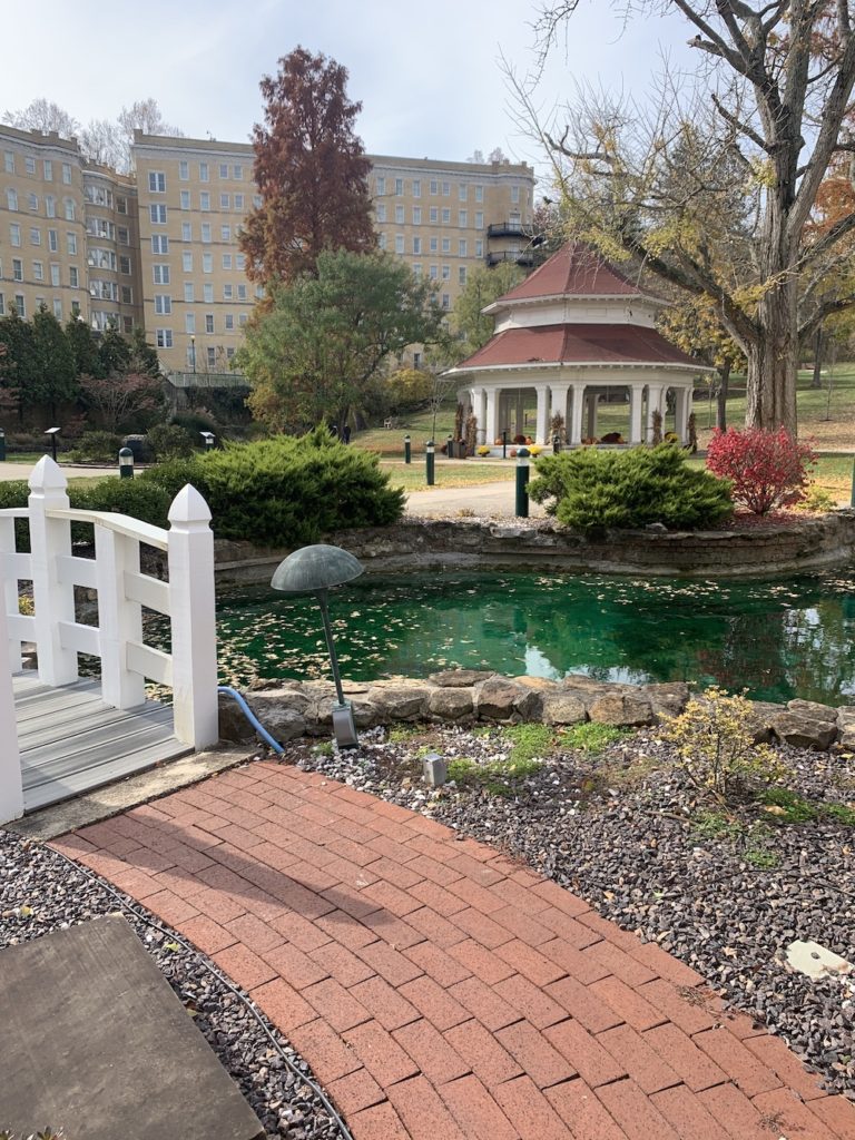 The West Baden Hotel has three wings, a spa wing, the spring wing — which is near the Pluto Spring and is still there and flowing, and the garden wing rounding out the hotel. Unlike the French Lick Hotel, the West Baden Hotel was hit hard by the Great Depression as the hotel was already vacant. Whereas the French Lick Hotel has only closed for a year for restoration purposes.