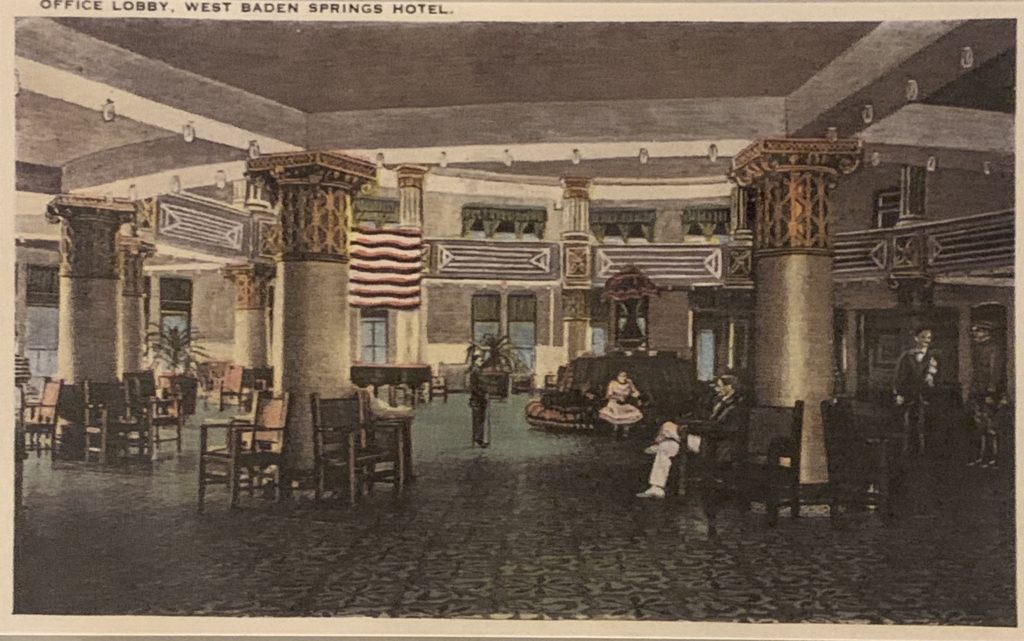 - West Baden had four mineral springs that you could visit that were advertised to cure all diseases.